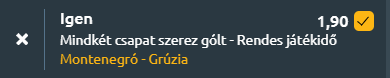 - Georgia az utóbbi időben 14 gólt szerzett két barátságos mérkőzésen, de ezúttal nehezebb feladat elé néznek. Azonban a jó formájuknak és a felkészülési mérkőzéseken mutatott teljesítményüknek köszönhetően a vendéggólban reménykedhetünk reálisan, Montenegró pedig hazai környezetben veszélyes ellenfél. Jó esély van a gólváltásra!