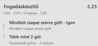 Ez a rovatom a Fogadáskészítő segítségével készült el. Az adott mérkőzést kielemezve 2-3 szempontból összeállított tippet küldök játékba, amelynek szorzója minden esetben a duplázó körüli értéket közelíti, de mégis jó esélyekkel indul! Az indoklást rendhagyó módon távirati jelleggel csinálom. Nincs fölösleges sallang, csak a sziklaszilárd tények. A 20 éven aluliak világbajnokságának második elődöntőjében az USA U20-as válogatottja Uruguay U20-as csapatával csap össze az Estadio Unico Madre de Ciudadesben.
