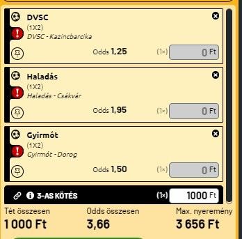 A mai NB2-es hármas kötés-szelvényemben három erősen valószínű győzelemre számítok. A kötés eredménye egy vastag háromésfeles szorzó!