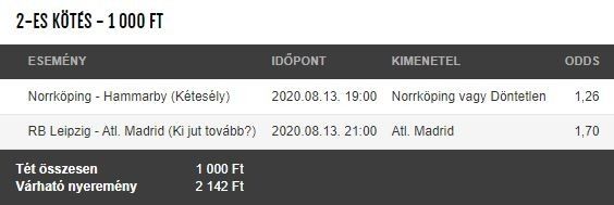 - A másik mérkőzésemen a Norrköpping hazai meccsét választottam, ami alapjában is inkább hazai. Én mellé raktam egy X-et is. Kéteséllyel nem kap ki a Norrcsöpping.