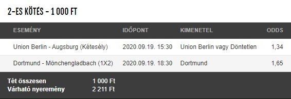 - A másik meccseb az Union Berlin - Augsburg összecsapás. Vélhetően ez a két csapat idén is a tabella alsó felében tartózkodik majd, ha pedig nem indul jól a bajnokság és vergődni kezdenek, könnyen a kieső zónában találhatják magukat. Az Union Berlin egy olyan csapat, amely kifejezetten otthon erős. A bajnoki nyitómeccsen hazai környezetben a velük hasonló szinten álló Augsburg ellen kötelező lenne a győzelem. Én kétesélyre, 1X-re veszem. Nem kap ki otthon az Union!