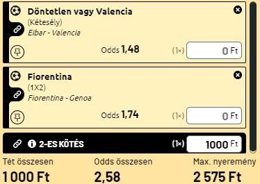- Ma egy olasz és egy spanyol meccset kötöttem egy szelvényre. A La Ligában az Eibar otthonába a 15. helyen álló Valencia látogat. Nem megy jól a denevéres alakulatnak és a bukik sem sok jót várnak az Eibar ellen tőlük, de én arra számítok, hogy a Valencia ma feltámad és a baszk csapatnál bebizonyítja, hogy kreatívabb, jobb csapat, mint a hazai ellenfele. X2