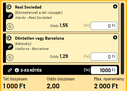 A mai duplázó a spanyol bajnokságból érkezik és két mérkőzést tartalmaz:
