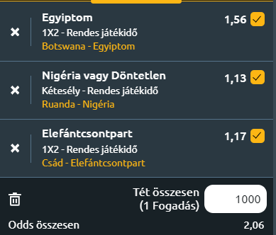 Az aktuális nap sporteseményeiből válogatunk és így keresünk egy olyan szelvényt, amely alacsony kockázaton ad ki egy közel duplázó szelvényt. A mai összeállítás ismét Afrikából érkezik!