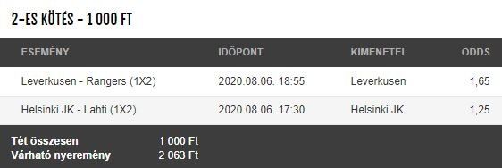 - A másik összecsapás a finn bajnoki, HJK - Lahti, ami kőkemény és hatalmas hazai papírforma. Reméljük, nem ma megy el.