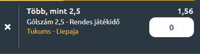 - A Tukums a tízcsapatos lett élvonalban a 9., osztályozós helyen állomásozik 15 ponttal, amit 19 meccsen hozott össze. A gárda egy botrányos sorozatot, olybá tűnik, hogy lezárt. Előbb otthon ikszelt, majd idegenben tudott nyerni a 6. BVC vendégeként. Kellettek is ezek az egységek a társulatnak, ugyanis a sereghajtó Metta 13-nál jár. Otthon 2-4-3-as sort hozott össze, ehhez 13-17-es gólkülönbség társul. Összesen már 36 gólt kapott, ez a második legtöbb a mezőnyben.