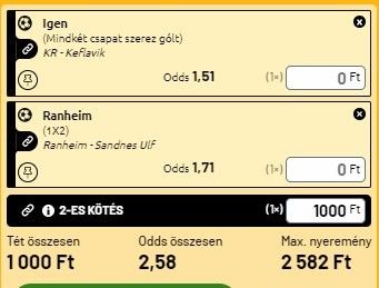 - A másik oldalon kiesési rangadó a norvég második vonalban. Két 10 pontos csapat, a gólkülönbség helyezi őket a sorrendbe. A Ranheim 15. a Sandnes 13. Itt esélyesebb a hazai alakulat és ezek a norvég kettes csapatok nem túl kreatívak, így gyakorta lejön a papírforma a kiscsapatoknál.