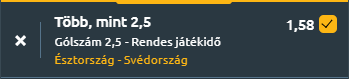 - A mérkőzésen Svédország az esélyes, és bár Észtország hazai pályán erős, Svédország eddig dominálta az egymás elleni találkozóikat, az utolsó meccsükön 5-0-ra nyertek. Svédország előző meccsein is látványos támadójátékot mutatott. Svédország támadósora kifejezetten erős, a legutóbbi mérkőzéseiken rendszeresen több gólt szereztek. Észtország otthon eredményes szokott lenni, és az előző meccsükön is 3 gólt szereztek. Emellett Svédország védelme időnként sebezhető, mint ahogy azt a Szlovákia elleni két bekapott gól is mutatja, így minimum három gól várható ezen a meccsen és akár a gólváltás is benne van!