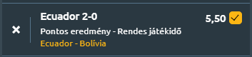 - Ecuador hat egymást követő hazai mérkőzésen győzte le Bolíviát, ezeken 14 gólt szerezve, így joggal bízhatnak abban, hogy most is folytatni tudják ezt a sorozatot. Bolívia védekezése jelenleg a leggyengébb Dél-Amerikában, hiszen tíz mérkőzésen 21 gólt kaptak. Ecuador annyit ad ki magából, amennyi kell. Az 1-0 mindig veszélyes eredmény, hiszen bármikor benne lehet egy esetleges egyenlítés, így rárúgják a másodikat is, addig hajtanak, utána pedig kényelmes fokozatban lejátsszák a meccs hátralévő szakaszát. 2-0-ás győzelem várható. Ez kockázatos tipp, nyilván, a sima hazai erős esély egy szelvénybe!