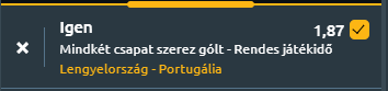 - Portugália erős támadójátékával Ronaldo vezetésével szinte biztosra vehető, hogy betalál, míg Lengyelország rendelkezik a világ egyik legjobb csatárával, Lewandowskival, aki képes kihasználni a portugál védelem sebezhetőségeit. Mindkét csapat hátvédsora sebezhető, és az elmúlt meccseik során mindketten beszedtek gólokat. Gólváltás várható.