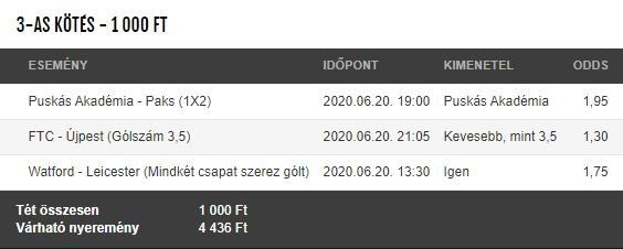 - Az NB1-ből két meccset választottam. A Puskás Akadémia a harmadik helyre vágyik, ami EL-selejtezőt ér, jobb csapat a paksiaknál, ráadásul Böde lesérült. Itt a hazai győzelmen kívül nem tudok elképzelni más variációt, legalábbis hatalmas meglepetés lenne.