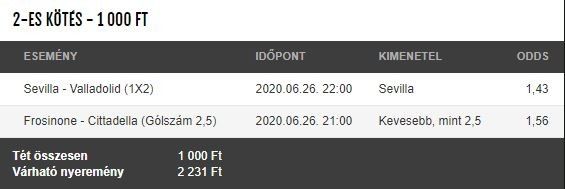 - Az olasz B liga alapjában véve is a catenaccio-ra, vagyis a zárt védekezésre épül, emiatt az UNDER igencsak gyakori. De van néhány csapat, amelynek különösen kemény a védelme. Ezek egyike a Frosinone, amely most a 3. helyen áll, célja feljutni az első osztályba, amire abszolút reális esélye van. 29 meccsen 23 gólt kaptak, az elmúlt öt találkozóból négy UNDER 2,5 lett nekik. Ma is esélyes!