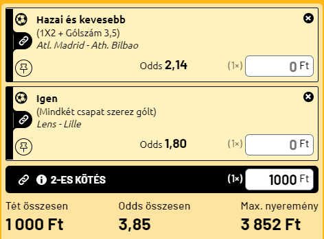 - A másik mérkőzésen az Atletico Madrid, amelynek a védelme évek óta masszív mint a kőfal, erre Diego Simeone a garancia. Elöl pedig Matheus Cunha és Antoine Griezmann érkeztével megerősödtek a matracosok. Most már nem elég Suarezre vagy Joao Felixre figyelni. De az Atleti nagyon erős csapat, nem véletlenül nyerte meg tavaly a bajnokságot. Viszont a Bilbao is remekül kezdett, négy meccsen két győzelem és két döntetlen után még mindig negyedikek. Nagy küzdelmet várok és csak 1 vagy 2 gólt, a baszkok nem is lőnek. Ezért be lehet próbálni egy komolyabb szorzót is.