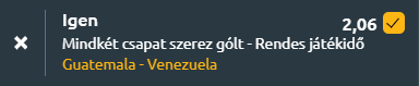- Guatemala nincs olyan jó formában az utóbbi időszakban. legutóbb csütörtökön, az Ecuador elleni barátságos találkozón szenvedtek vereséget New Jerseyben. Luis Fernando Tena csapata immár hét mérkőzés óta nyeretlen, egészen tavaly szeptemberig visszamenőleg, amikor a CONCACAF Nemzetek Ligájában legyőzték El Salvadort. A rossz teljesítmény oka a vérszegény támadósor, volt hogy négy meccsen keresztül nem voltak képesek betalálni. A következő világbajnoki döntőre esélyes Guatemala júniusban kezdi meg világbajnoki selejtezősorozatát. Várhatóan továbbjutnak a második körös csoportból, amelyben Dominika, a Dominikai Köztársaság és Jamaica is szerepel. De ez a mai meccs nehéz lesz a számukra és a hazai pálya előnye is talán csak egy gólra lesz elég. Venezuela lendületben van és minimum a döntetlent elérik, de sokkal inkább a vendégsiker a valószínűbb. A gólváltás azonban esélyes, magában is és X2-vel kötve még jobb választás lehet!