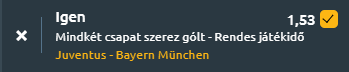 - A gólváltás erősen esélyes, hiszen a Juventus minden eddigi mérkőzésén legalább két gólt szerzett a szezonban, ami azt mutatja, hogy támadójátékuk erős és hatékony. Hasonlóképpen, a Bayern München is rendkívül eredményes volt az Arsenal elleni 5-2-es győzelem során, ami azt bizonyítja, hogy képesek sok gólt szerezni. A Bayern München a hétvégén elveszítette veretlenségi sorozatát a Wolfsburg ellen, ami megmutatta, hogy sebezhetőek lehetnek a védelemben. Hasonlóképpen, a Juventus sem verhetetlen, hiszen a Valerenga ellen csak egy gólt szereztek, és ellenük is lehet esély támadni. Mindkét csapat célja, hogy dominálja a csoportkört, és ehhez mindenképpen eredményes támadójátékot kell mutatniuk. A Juventus és a Bayern is magas színvonalú csapat, így mindkét félnek lesznek helyzetei, amelyek gólváltáshoz vezethetnek.