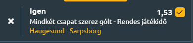 - Az FK Haugesund és a Sarpsborg 08 egyaránt a kiesés ellen harcol a norvég első ligában. A két csapat jelenleg a 13. és 15. helyen áll a tabellán, de kevesebbet játszottak a vetélytársaiknál. A Haugesund tavaly a 12. helyen végzett, és idén a középmezőnyt tűzték ki célul. Hét mérkőzés óta nem kaptak többet két gólnál egy meccsen, és az utóbbi öt mérkőzésükből hét pontot gyűjtöttek. Hazai pályán két egymást követő győzelmet arattak legutóbb a Kristiansund és a Sandefjord ellen. A Sarpsborg legutóbbi hat mérkőzéséből ötöt elveszített, így formájuk nem a legjobb. A támadásuk jó, képesek gólokat szerezni, sikerült nyerniük még a Molde ellen, védekezésben azonban problémáik vannak, és jelenleg a legrosszabb védelmi mutatóval rendelkeznek a ligában. Éppen ezek alapján a gólváltásra van jó esély, a győzelem kiléte a pillanatnyi formán alapszik majd.