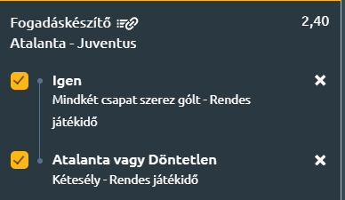 - A forma és a hazai pálya az Atalanta mellett szól, miközben a Juventus idegenbeli teljesítménye ingadozó, de azért gólra jók lesznek. Szoros mérkőzésen a bergamóiak kerülhetnek ki győztesen, vagy döntetlen várható és mindkét gárda betalál majd.