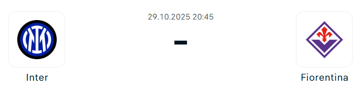 - A Fiorentina tíz nap alatt másodszor látogat a San Siróba, ezúttal az Inter ellen. A csapat legutóbb 2–1-re kikapott az AC Milantól, ám azóta valamelyest javult a formája, előbb 3–0-ra nyert a Konferencia-ligában a Rapid Wien ellen, majd 2–2-es döntetlent játszott a Bolognával. A jó nemzetközi szereplés ellenére Stefano Pioli gárdája továbbra sem találja a ritmust a bajnokságban, hiszen nyolc forduló után még nyeretlen, és mindössze négy pontot gyűjtött. A firenzeiek meccsei ugyanakkor szintén eseménydúsak, hiszen az utóbbi négy találkozójukon legalább három gól született. A vezetőedző várhatóan szintén változtat a kezdőn, miután Niccolò Fortini, Cher Ndour és Edin Dzeko jó formában szálltak be a legutóbbi mérkőzésen, míg Christian Kouamé és Tariq Lamptey hosszú távon továbbra is sérültek.