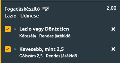 - A Lazio önbizalma megnőtt az utóbbi sikerek hatására, de az Udinese masszív, nehezen feltörhető ellenfél, amely gyors ellentámadásokkal komoly veszélyt jelenthet. A két csapat kiegyenlített erőt képvisel, és a középmezőnyben haladva egyik fél sem tud tartós fölényt kialakítani, így nem várhatunk gólparádét. Az 1X mellett az UNDER 2,5 is beköthető.