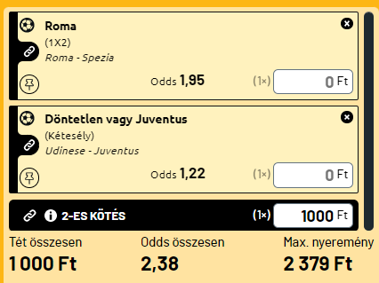- Roma – Spezia: A szerdai gyötrelmes Európa Liga-döntős vereség után a Romának nyernie kell a Spezia ellen a Serie A utolsó játéknapján vasárnap, hogy a következő szezonban is Európában szerepeljen. Viszont a vendégek számára is nagyon fontos ez a meccs, mert a Hellas Veronával pontegyenlőséggel indulnak neki az utolsó fordulónak és a kiesés a tét! A Roma hétközi veresége ellenére Mourinho képes lesz arra, hogy motiválja játékosait egy utolsó erőpróbára a talán utolsó mérkőzésén. A Spezia formája siralmas volt 2023-ban, így a hazaiak nyerni fognak várhatóan!