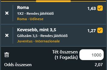 - Juventus - Inter Milan: Egy igazi rangadót rendeznek vasárnap este az olasz élvonalban, a Juventus a Scudetto rivális Inter Milant fogadja a Derby d'Italiában - a két olasz gigász 181. bajnoki találkozóján. A Juve mindössze két ponttal van lemaradva a listavezető Inter mögött, így a torinói győzelemmel a régi ellenfelek fölé kerülne, és újra a bajnoki címre törne, miután hosszú ideig a Nerazzurri árnyékában volt. Két rendkívül jó védelemmel rendelkező olasz csapat találkozik ma. Csak a Ligue 1-ben szereplő Nice kapott kevesebb gólt, mint az Inter (hat) és a Juventus (hét) az idei szezonban Európa öt legjobb bajnokságában, így nehezen elképzelhető az, hogy most ömleni fognak a gólok. Nem fognak, itt ma valamelyik gárda 1-0 arányban nyerni tud, esetleg 1-1, vagy 0-0-ás döntetlen várható. Kevesebb, mint 2,5 gól a tipp.