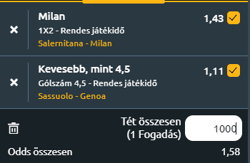 - Salernitana - AC Milan: Pikáns meccset rendeznek ma Salernóban! Az AC Milan a Stadio Arechibe utazik a tabella utolsó helyén álló Salernitana ellen. A mérkőzésen a Salernitana főnöke, Filippo Inzaghi ellenfele az a klub lesz, ahol játékos pályafutása nagy részét töltötte, és ahol egy rövid ideig menedzserként is tevékenykedett. A Milan nagyon erős támadásban, és a törékeny Salernitana hátvédsorát kihasználva egy kényelmes győzelmet arathat itt, amire nagy szüksége is van. Sima vendéggyőzelemre kell számítani!