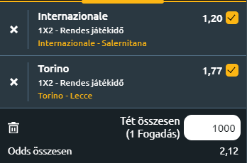- Inter – Salernitana: Az Inter zsinórban hatodik győzelmét szeretné megszerezni a Serie A-ban és ezzel is közelebb kerüljenek a bajnoki címhez. A bajnokságban zsinórban öt győzelmet arattak, szeptember óta veretlenek. Ebben a szakaszban a Juventust is és minden meccsen lőttek egy gólt. A legjobb védelmük van, csak 12 gólt kaptak eddig, ehhez párosul a legjobb támadósor, amely 55 alkalommal betalált már a bajnokságban. 60 pontjukkal a tabella 1. helyén állnak hét ponttal a Juventus és nyolc ponttal a Milan előtt. Ebben a szezonban csak egy vereséget szenvedtek el, és azt a vereséget a Sassuolo ellen szenvedték el otthon szeptemberben. A Salernitana számára ez a 3. szezon a Serie A-ban. Az előző két idényt valahogy túlélték, de ezúttal sokkal nehezebb dolguk lesz. A tabella 20. helyén állnak 24 mérkőzés után, és mindössze két győzelemmel és 13 ponttal rendelkeznek. Hét pontra vannak a biztonságtól. Nincs esélyük ma sem, nyer az Inter.