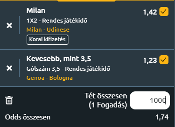 - Milan - Udinese: A bajnokságot kiválóan kezdő Udinese az 5. helyen áll a tabellán, míg mai vendéglátóik mögöttük egy hellyel a hatodikok, két pont választja el őket egymástól. Ha a piros-feketék ma nyerni tudnak, akkor megelőzik az udinei alakulatot. Nincs jó formában a Milan. Két BL-vereség után még Firenzében is kikapott, így ma eléggé zabosan fogadják az Udinesét. Idén is úgy néz ki, hogy idegenben gyengébb a Milan, ezzel szemben otthon három bajnoki mérkőzésen veretlenek az idei szezonban. Az olasz futballszakértők a Milan védelmének hiányosságait említik fő problémának. Fonseca mester nem engedhet meg magának több botlást, különösne otthon nem. Természetesen a jó formában lévő Udinesénél máshogy gondolják, ők ma is nyerni akarnak a döcögő Milan ellen, és mivel ez még tavaly is sikerült nekik, jogos az önbizalom bennük. Az Udinese a Serie A túléléséért folytatott sikeres harcáig visszanyúlva az utóbbi 10 bajnoki mérkőzéséből hatot megnyert, ráadásul a kupában is menetel. A két gárda között azonban komoly minőségi különbség van! A hazai pályán erős Milan várhatóan győzelemmel zárja a mai napot. HAZAI