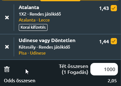 - Atalanta BC – Lecce: Az Atalanta az új szezonban eddig két döntetlennel rajtolt, hiszen a Pisa ellen hazai pályán gól nélküli döntetlent játszott, majd Parmában 1-1-re végeztek, ahol Mario Pašalić találatát gyorsan egalizálta Patrick Cutrone. A csapat élére a nyáron Ivan Jurić érkezett, aki barátját és mentorát, Gian Piero Gasperinit váltotta a kispadon. Az előző kilenc év sikerkorszakát követően, amely során ötször is Bajnokok Ligája-szereplést harcolt ki a klub, az új tréner előtt nagy a kihívás. A Lecce sem kezdte fényesen a szezont, két forduló után mindössze egy pontot szerzett, ráadásul még gólt sem rúgott. A Coppa Italiában ugyan sikerült legyőzni a Juve Stabiát, de a bajnokságban a Genoa ellen gól nélküli döntetlenre futotta, míg az AC Milan ellen 2-0-ra kaptak ki, annak ellenére, hogy több mint egy órán keresztül hősiesen tartották magukat. Az edző, Eusebio Di Francesco szintén bizonyítani szeretne, hiszen két korábbi csapatával is kiesést élt át, és most szeretné eloszlatni a kételyeket. Az Atalanta számára ez a mérkőzés ideális alkalom az első győzelem megszerzésére, hiszen két csalódást keltő döntetlen után most hazai pályán, papíron gyengébb ellenfél ellen léphetnek pályára. A csapat támadóereje Pašalić és Lookman révén komoly lehetőségeket tartogat, míg a vendégek eddig sem gólokkal, sem stabil védelemmel nem tudtak kitűnni. Hazai győzelem várható!