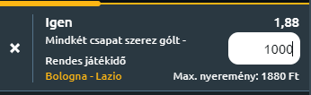 - A Bologna és a Lazio is az elmúlt öt mérkőzésén minden alkalommal tudott gólt szerezni, éppen ezért a mai összecsapáson jó választás lehet a gólváltás!