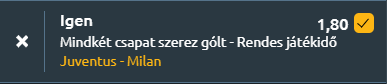 - A hazai pálya miatt és a Milan sérültjei miatt kicsit a Zebrák az esélyesebbek, de Leao vezérletével a Milan sem fogja olcsón adni a bőrét. Mindkét csapat szerez gólt.