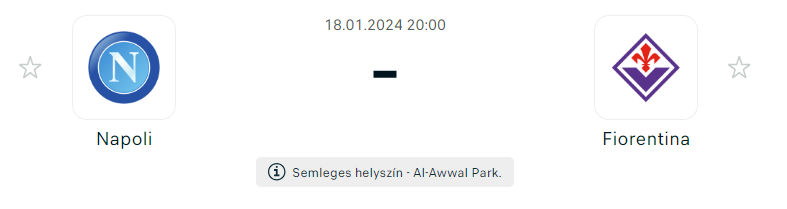 - A Serie A-ban lejátszott 20 forduló után a Napolit és a Fiorentinát mindössze három pont választja el egymástól a tabellán. A Napoli küzdelme a bajnoki cím megvédéséért azonban már most hamvába holt, hiszen jelentős, 20 pontos hátránya van a listavezető Interhez képest. Az utóbbi öt mérkőzésen mindössze egy győzelmet aratott, azt is a bajnokság leggyengébb csapata, a Salernitana ellen. Mindezeken túl a csapat gólkirálya Victor Osimhen a válogatottbeli elfoglaltságai miatt nem lép pályára a Napoliban Rijádban, és a jelenlegi olasz bajnok más csapat vele és nélküle, így az esélyek egyértelműen a Fiorentina irányába billennek el.A Napoli már nyert szuperkupa-címet, legutóbb épp a közel-keleten, akkor Katarban rendezték az olasz szuperkupát, és ha akkor sikerült, miért ne sikerülne most ez.