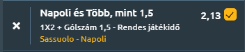 - Bár a Sassuolo gyengélkedik, de azt érdemes megjegyezni, a legutóbbi hét hazai mérkőzésükön sikerült az ellenfél hálójába találniuk. Tekintettel arra, hogy a Napoli mindenáron mindhárom pontra vágyik ezen a mérkőzésen, egy szórakoztató és gólgazdag meccset láthatunk, amelyen nyer a Napoli.