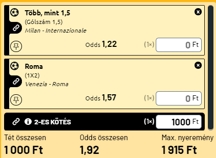 - A másik összecsapás a milánói derbi, ahol most a Rossoneri lesz otthon. Két jó csapat egy nagyon feszült hangulatú meccsen. Mindkét oldalon kiváló támadókkal. Minimum két gólt várok, leginkább igazságos elosztásban, de a mai tippemben csak az over 1,5 gól szerepel.