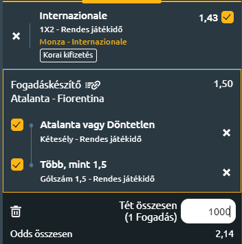- Atalanta BC – Fiorentina: A Real Madrid elleni múlt havi UEFA Szuperkupa-vereséggel együtt az Atalanta az idei szezon első három mérkőzéséből háromszor is hoppon maradt, pedig ennél sokkal jobb csapat! Gian Piero Gasperini csapata a Lecce elleni győzelemmel kezdte a 2024-25-ös szezont, de ezt két kudarc követte a Torino és az Inter Milan ellen - utóbbi vereség különösen megrázó volt. De látható, hogy ebben a vereségekkel tarkított időszakban két nagyon erős gárda is megverte őket, mindenképp javulás várható az eredményekben is, erre Gasperini garancia! A Fiorentina tavaly ismét elveszítette a Konferencia Liga-döntőt, Vincenzo Italiano ezután félreállt és edzőváltás történt. Raffaele Palladino még nem tudta teljesen beindítani a Fiorentinát. Minden bizonnyal szórakoztató találkozó lesz a Gewiss Stadionban, hiszen a két klub az elmúlt szezonban két mérkőzésen 10 gólt szerzett közösen, és az idei szezonban is az élvonalban kezdtek. Az Atalanta rendelkezik eddig a legmagasabb xG-vel a Serie A-ban (6,2), míg a Fiorentina lőtte be a legtöbb kapura lövést jegyzi. A hazai pálya előnye miatt az 1X a választásom a két támadó felfogás miatt pedig az over 1,5 is.