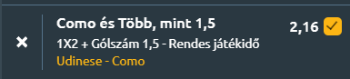 - Úgy véljük, hogy a Como nyer, egy olyan meccsen, amelyen legalább két találat születik.