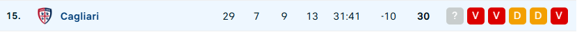- A Cagliari az elmúlt hat bajnokijából négyet elveszített.