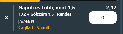 Napoli győz és több mint 2,5 gól – 3,05: Jelentős a csapatok közötti különbség, mind a minőség, mind a forma, mind az egymás elleni párharcok történelmének szempontjából. A Napoli túl erős az átmenetekben és túl hatékony a tizenhatoson belül ahhoz, hogy a Cagliari reálisan képes legyen tartani vele a lépést. Kontrollált vendéggyőzelmet várunk, de nem lepődnénk meg, ha a hazaiak egy darabig versenyképesek maradnának. A vörös-kékek három hazai meccset elveszítettek ugyan a legjobb négy csapat ellen, de a Juventus és az AS Roma legyőzése az Unipol Domusban azt jelenti, hogy – ha akar – veszélyes lehet a gárda. A Napoli és a Cagliari az a két csapat a ligában, amelyek a legnagyobb gólszerzési aránnyal rendelkeznek: 47 százalék a campaniai- (28/59), és 46 százalék a szardíniai csapatnál (22/48). Antonio Conte legénységének utolsó nyolc bajnokiján rendre született legalább három találat. További érdekes adalék, hogy mindkét csapat gólt szerzett a Napoli utolsó kilenc tétmérkőzésén.