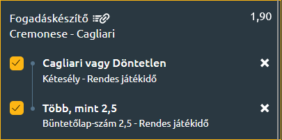 - Azt gondoljuk, hogy a Cagliari nem kap ma ki, emellett bízunk azért Kevin Bonacina játékvezetőben is, aki a minden bizonnyal feszült mérkőzésen kioszt majd három lapot!