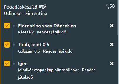 - És az az érzésünk, hogy sikerrel is járnak Mandragoráék. Egy érdekesség: az előző két kiírásba egyaránt nyertke a lilák Friuliában! Óvatosak leszünk: az X2 mellé várunk egy gólt is, és a feszült hangulat miatt minden bizonnyal mindkét oldalon lesz majd egy-egy büntetőlap, legalább!
