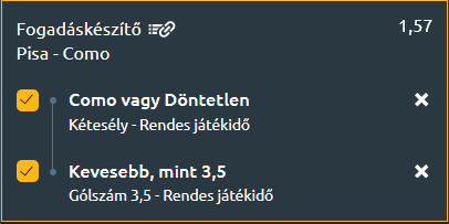 - A Como az esélyesebb, ám egy ikszre azért jó lehet a Pisa. Így maradunk az X2-nél, emellett pedig nem várunk gólzáport!
