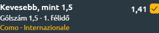 A Como a negyedik helyen áll a bajnokságban. A csapat számos kiváló fiatal játékossal rendelkezik. Nico Paz, Jesús Rodríguez és Maximo Perrone is sok csapat számára célpont lehet az átigazolási piacon, ahogy Jacobo Ramón is. Az Inter kerete így is erősebb, mégis kegyenlített mérkőzésre számítunk.