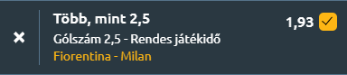 - Bár a Fiorentina saját otthonában erős teljesítményt nyújtott az elmúlt időszakban, sok gólt is szerez, így ma is esélyes erre. Míg a Milan támadóereje és a cserék minősége miatt valószínű, hogy szerez gólt. Ez a meccs kiválóan alkalmas over 2,5 gól tipp bevállalására!