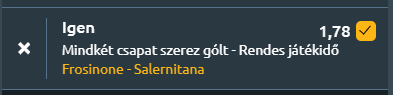 - Jelenleg a tabella végén álló Salernitana a legutóbbi fordulóban a Fiorentina ellen elszenvedte szezonbeli 22. vereségét, 0-2-re kikapott otthon, így kevés reménye maradt arra, hogy elkerülje a kiesést az olasz élvonalból. Annyira gyengék, hogy még megdönthetik a Chievo dicstelen rekordját, az egy szezonban szerzett pont számát, ami 15 jelenleg. Az utóbbi időben azonban rossz volt az idegenbeli formájuk: az utolsó öt mérkőzésükön egy döntetlen mellett négy vereséget szenvedtek el. Nincs ennél jobb lehetősége a Frosinone számára, hogy nyerjenek, hazai pályán érkezik egy verhető ellenfél!