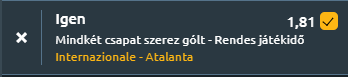 - Két erős csapat, mindketten remek formában vannak. Az inter és az Atalanta is kiváló támadási hatékonysággal rendelkeznek, sok gólt lőnek meccseiken. A gólváltás remek választás ezen a meccsen.