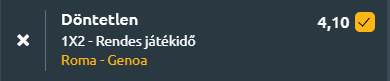 - A Roma hazai pályán idén már hat győzelmet aratott, de a négy vereségük rávilágít a csapat ingadozó teljesítményére. A Genoa stabil védekezése és idegenbeli hatékonysága jó, a vendégek számára elég ma az X is, amit ki fognak harcolni, főleg, hogy a Róma a nemzetközi kupára is tartalékolhat.