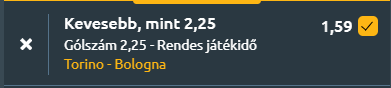 - A Torino egy négymeccses nyeretlen sorozatban van, jelenleg a 10. helyen állnak 46 ponttal, míg a Bologna még mindig versenyben van a BL-csoportkörös részvételért, a 4. helyen állnak 63 ponttal. A Torino legutóbb sima vereséget szenvedett a bajnok Intertől Milánóban, előtte pedig két 0-0-ás döntetlent játszottak. Miután az Internek sem találtak be, immáron hárommeccses lőtt gól nélküli sorozatban vannak. Amennyire gyenge a támadósor, annyira masszív a védelem! A 31 kapott gól kifejezetten jónak számít a tabella ezen részében. A Torino szinte minden meccset képes szorossá tenni és ez ma is így lesz!