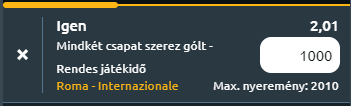 - A Róma orrnehéz, a Lukaku vezette támadósor kiválóan szerepel, a csapat különösen a hazai meccseken ellenállhatatlan. Az Inter pedig remek formában van, a támadójátéka tökéletes, egy igazi gépezet a milánói gárda, nem véletlenül robog a bajnoki cím felé. Mindkét csapat szerez gólt a tipp.