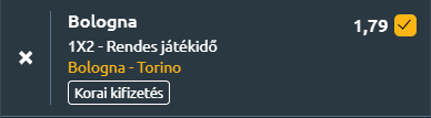 Egy Single Value Tipp következik, vagyis a sportfogadásban egy olyan értékelhető szorzó, amely single játékba küldés esetén is értéket hordoz magában! A hétközi olasz bajnokin a Bologna hazai pályán fogadja a Torino együttesét, amelyeket mindössze három pont választ el egymástól a Serie A tabelláján. A hazaiak a legutóbbi fordulóban elszalasztották a győzelem lehetőségét, míg a vendégek zsinórban két sikerrel hangoltak a találkozóra.