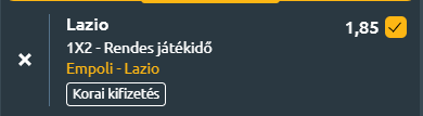 Egy Single Value Tipp következik, vagyis a sportfogadásban egy olyan értékelhető szorzó, amely single játékba küldés esetén is értéket hordoz magában! Két ellentétes minőséget képviselő csapat találkozik vasárnap a Stadio Castellaniban, míg a Lazio a Bajnokok Ligája-indulást érő helyekért harcol, addig az Empoli a kiesés elkerüléséért küzd!
